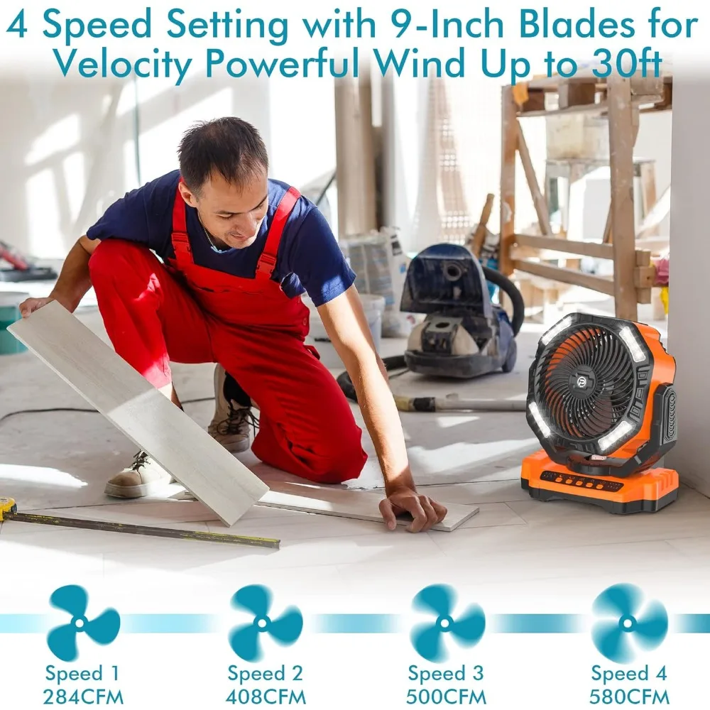 40000mAh Battery Operated Camping Fan, Rechargeable High Velocity Floor Fan, Auto Oscillation Remote Control Timer